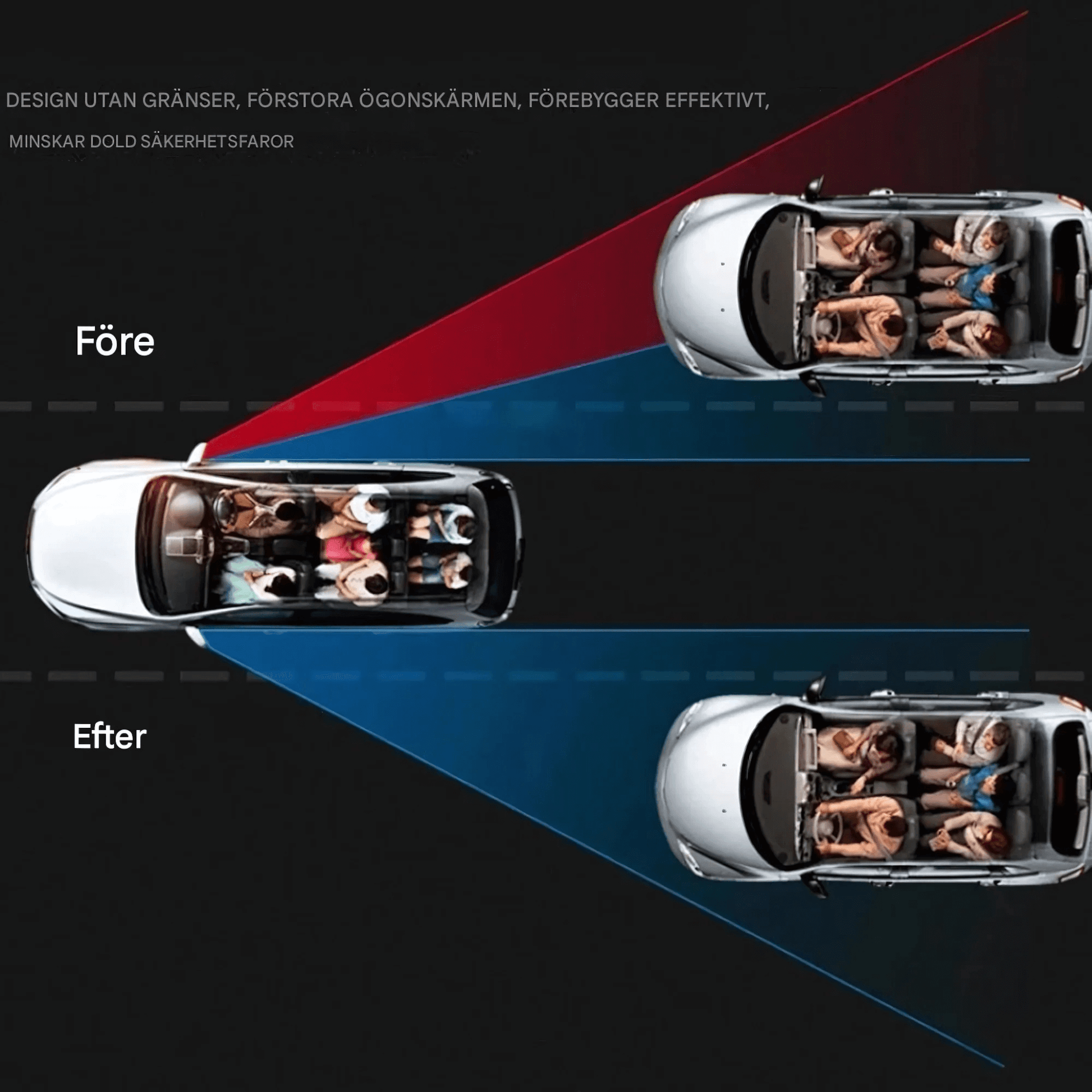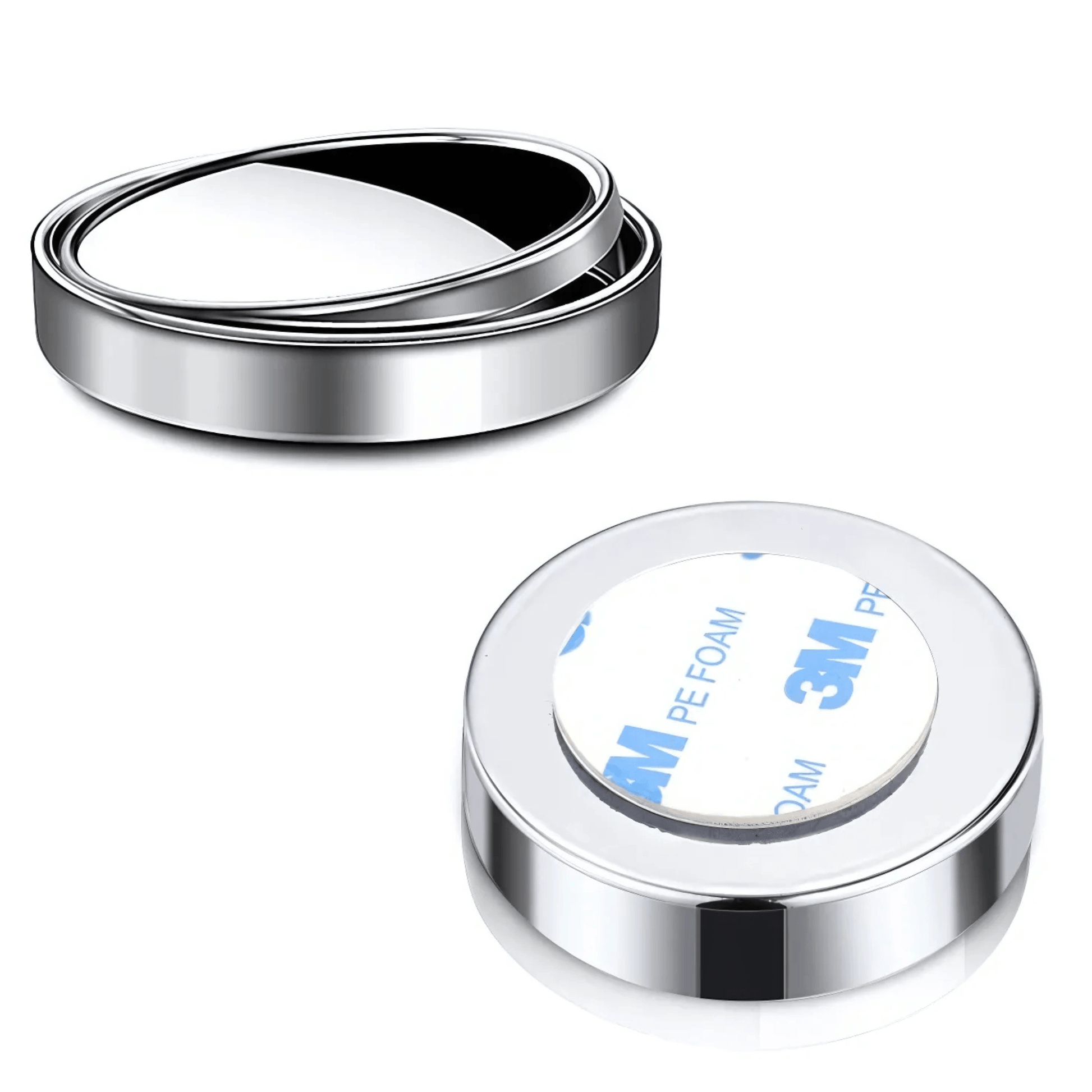 BlindSafe Mirror er et par runde, konvekse bakspeil som du enkelt kan feste til dine eksisterende sidespeil. Ved å justere vinkelen i 360° retninger kan du raskt få bedre oversikt over omgivelsene dine – spesielt i trange kryss, når du bytter fil eller parkerer på et trangt sted.