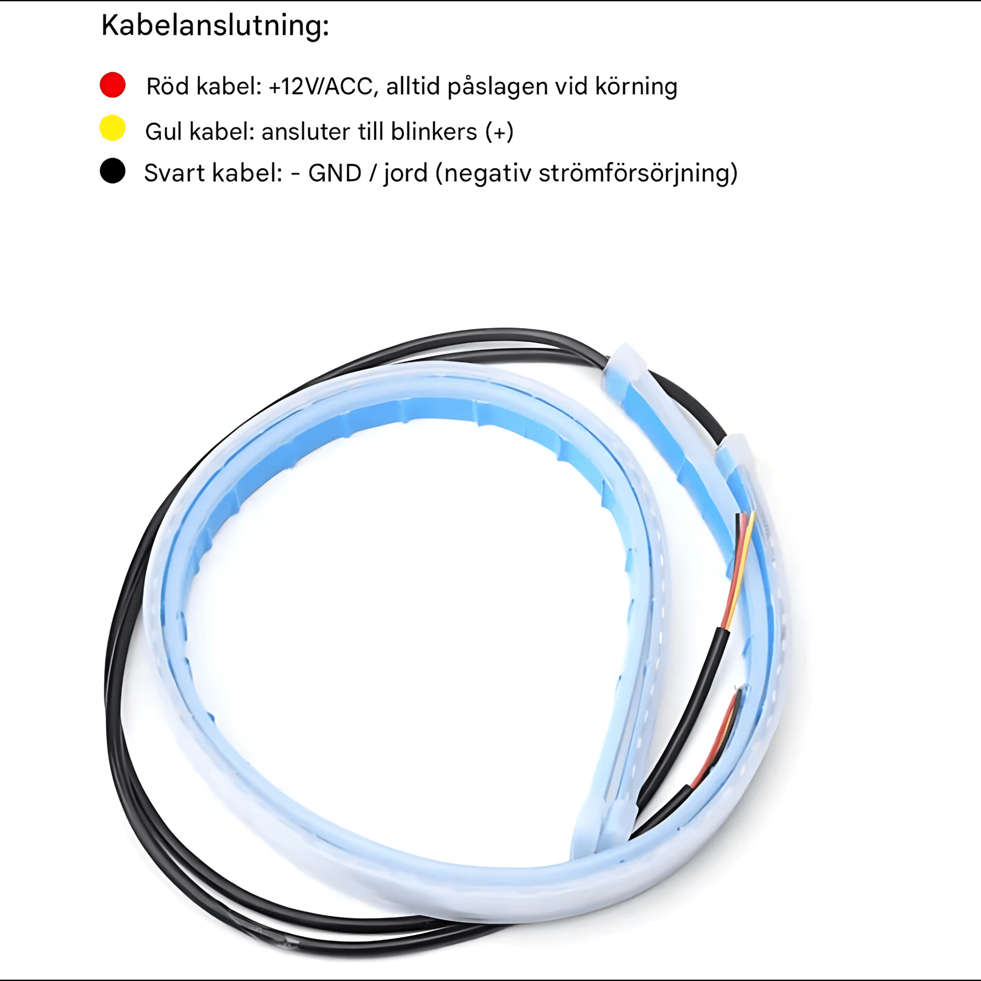 Koble en gul kabel til bilens blinklys, så kan stripen gløde i et flytende gult lys når du svinger – en detalj som noen mener gjør bilen mer synlig fra siden.