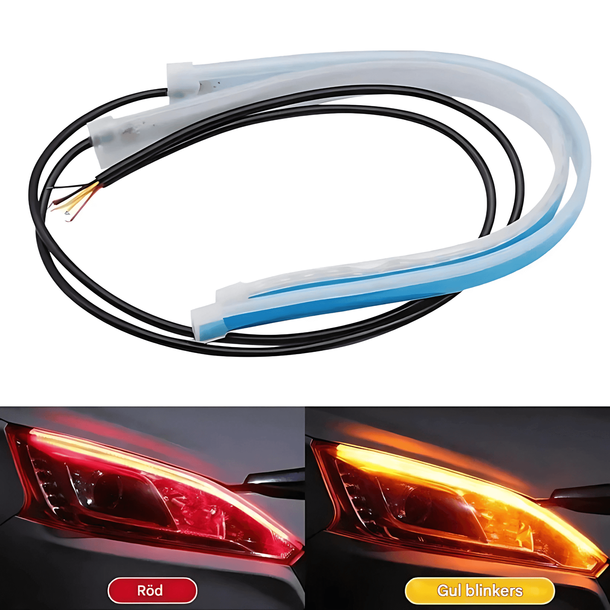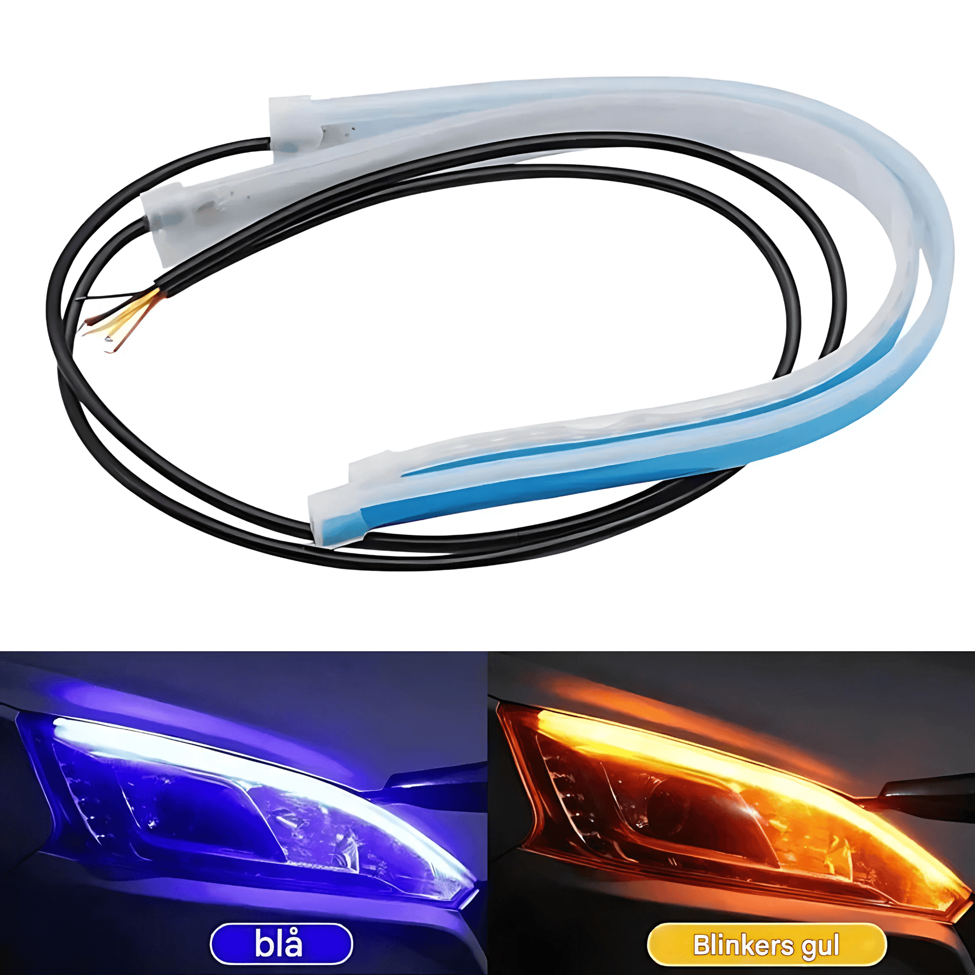 DriveGlow - LED-striper for frontlykter | Fleksible 30 cm kjørelys med blinklys- og bremselysfunksjon for bil