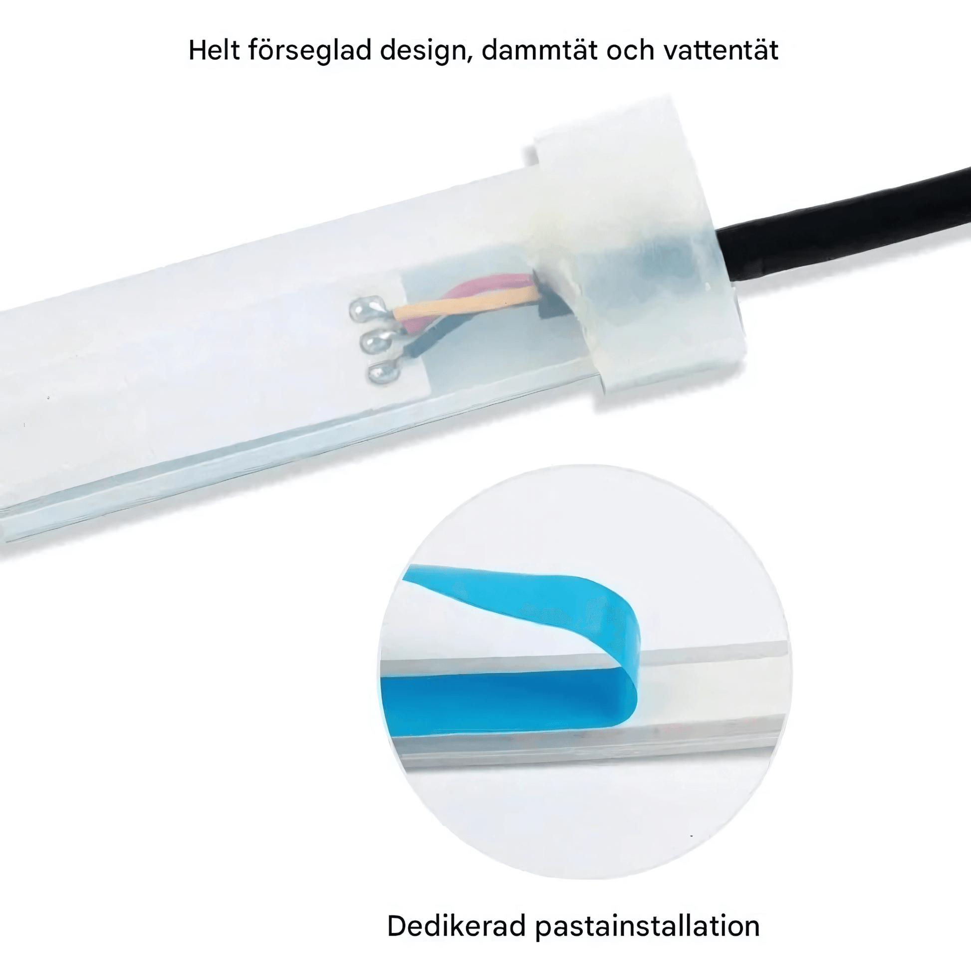 – Produktet er ikke vanntett i endene etter kutting – sørg for å isolere dem nøye med krympeslange eller silikon.