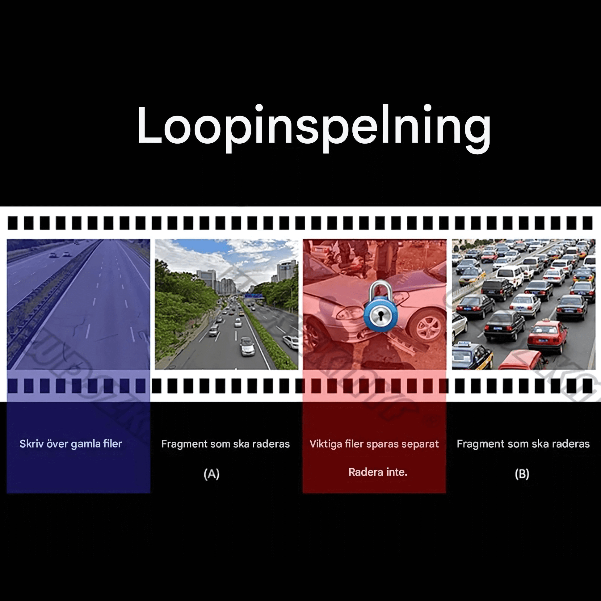 - 🔄 Loopopptak med G-sensor – videoer lagres ved kollisjon og slettes ikke automatisk