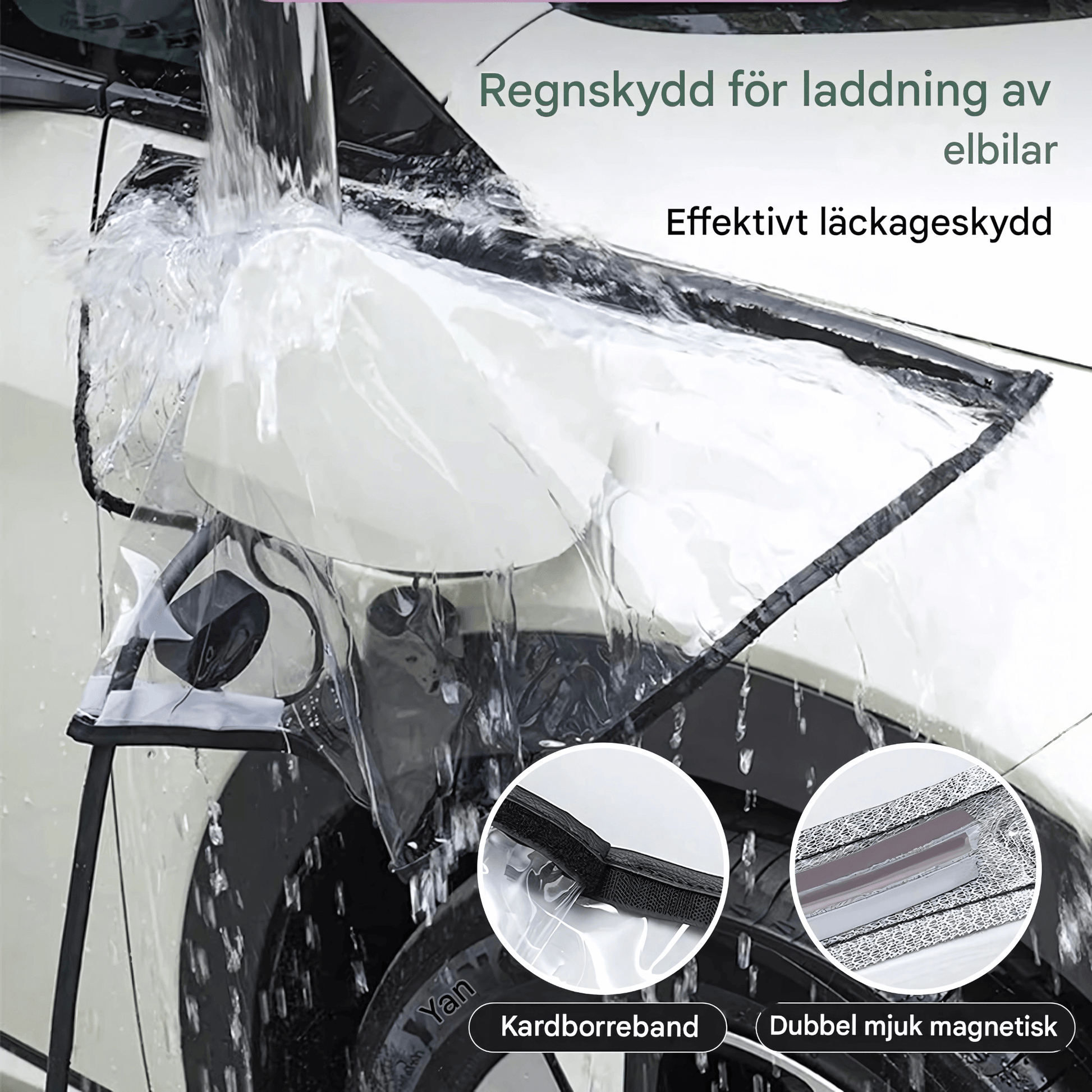 MagniShield er et regntrekk som kan brukes under lading i regnvær. Med både magnetfeste og borrelås kan det festes til mange metallkropper – og bidra til å redusere risikoen for at vann, smuss eller støv når ladeporten.