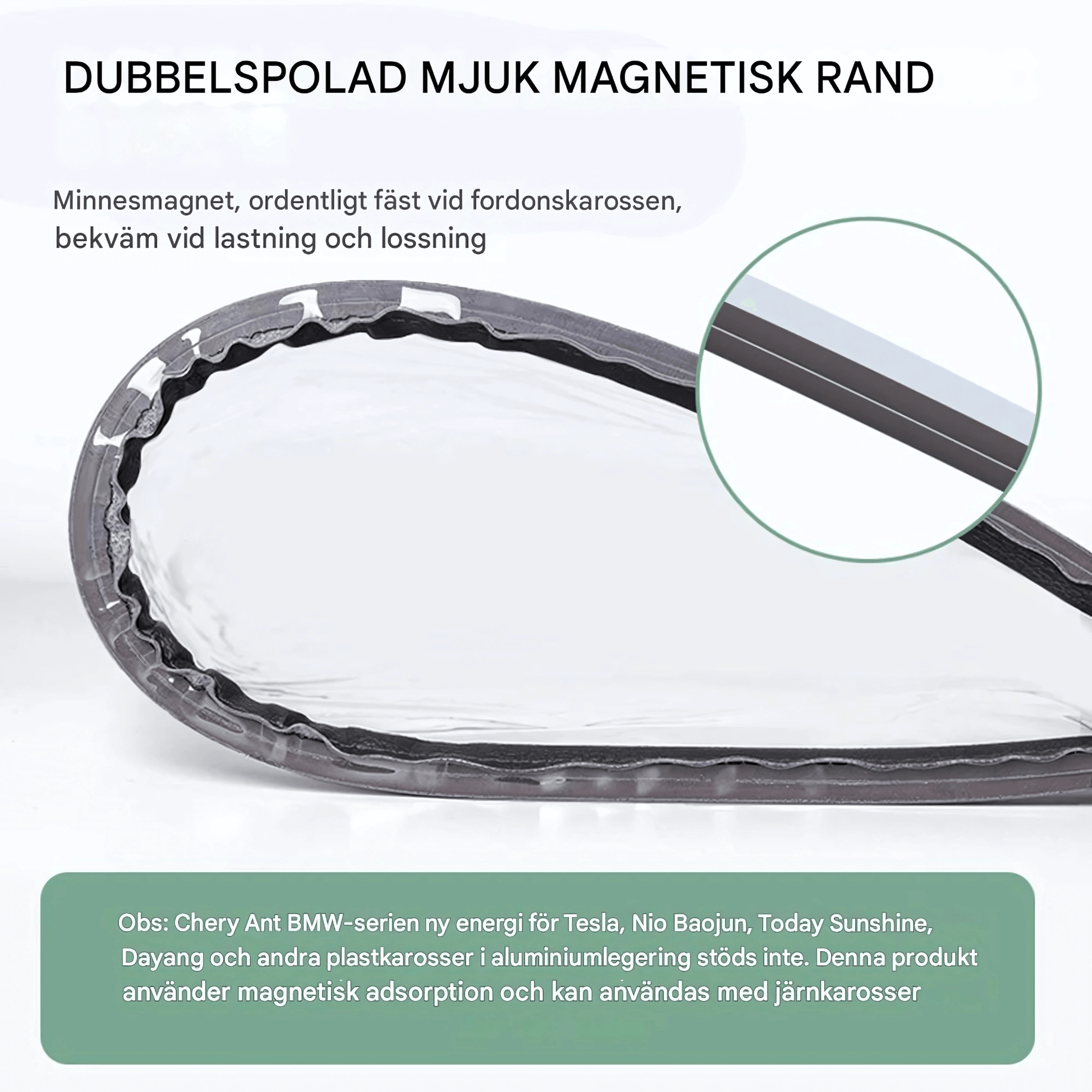 Denne beskyttelsen festes via magnet og er derfor ikke kompatibel med biler laget av aluminium eller plast , som for eksempel visse modeller fra Tesla, BMW, NIO, Baojun osv.