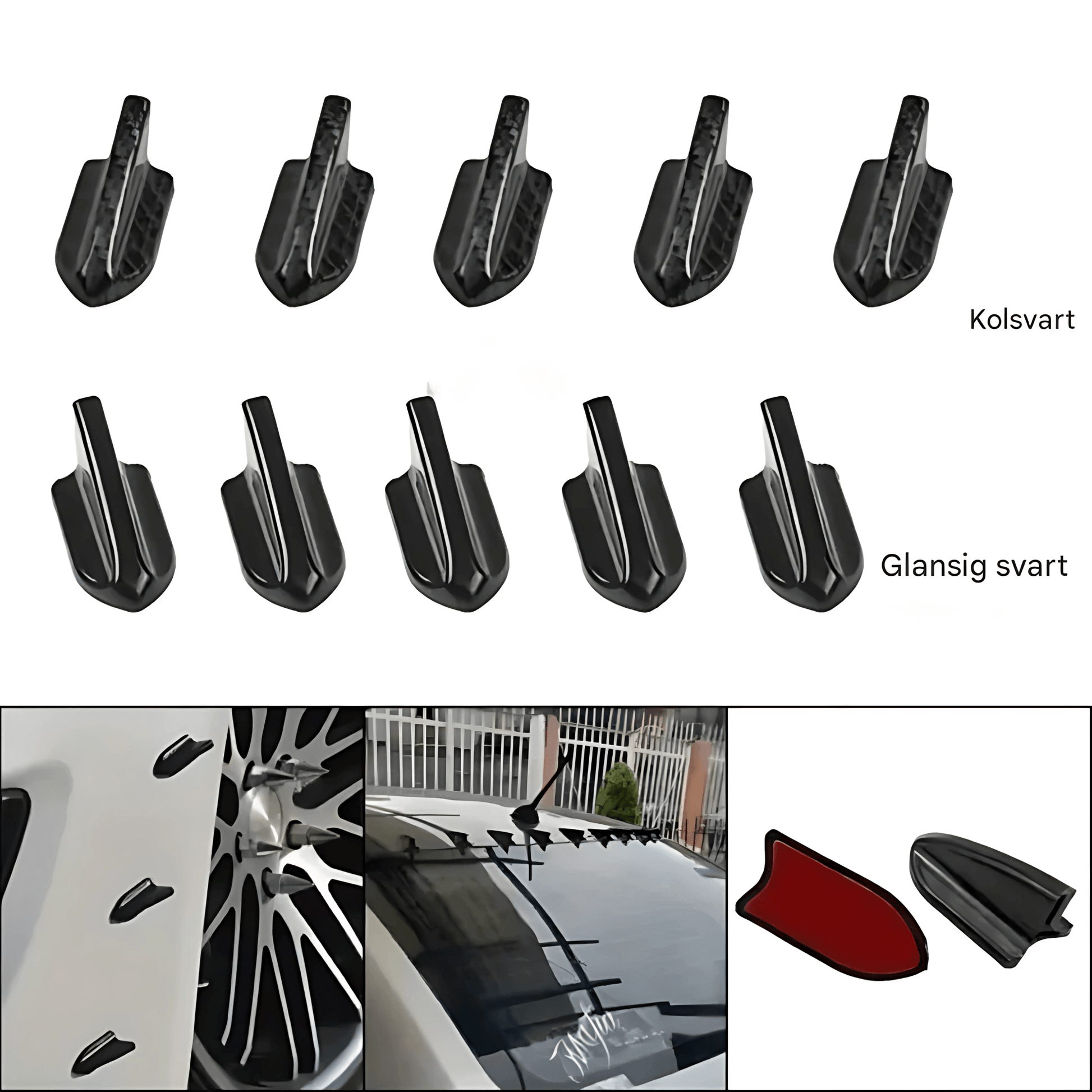 AeroSting - 6-Pack Takspoilers Shark Fins för Bil | Universell Vortex Generator i Svart eller Kolfiberlook
