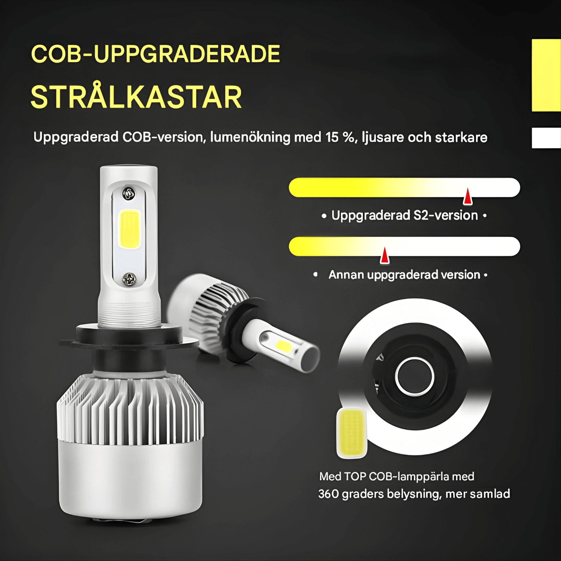 2 st BeamNova LED S2-strålkastarlampor i vald sockel (H1, H4, H7, 9005, 9006)