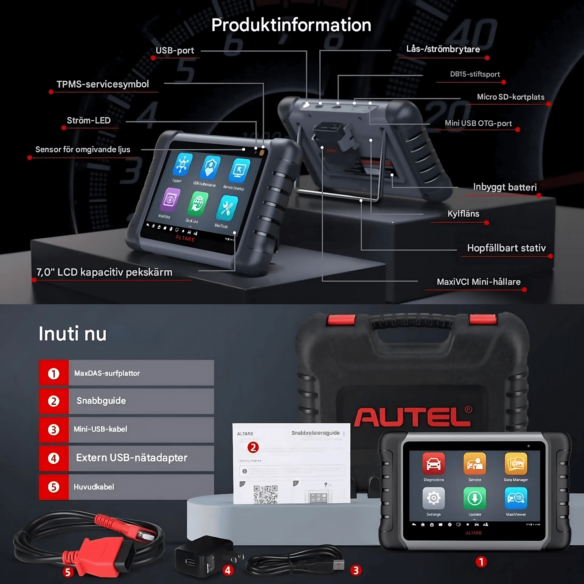 • Produkten är avsedd som ett diagnostiskt verktyg och är inte ett certifierat reparationssystem.