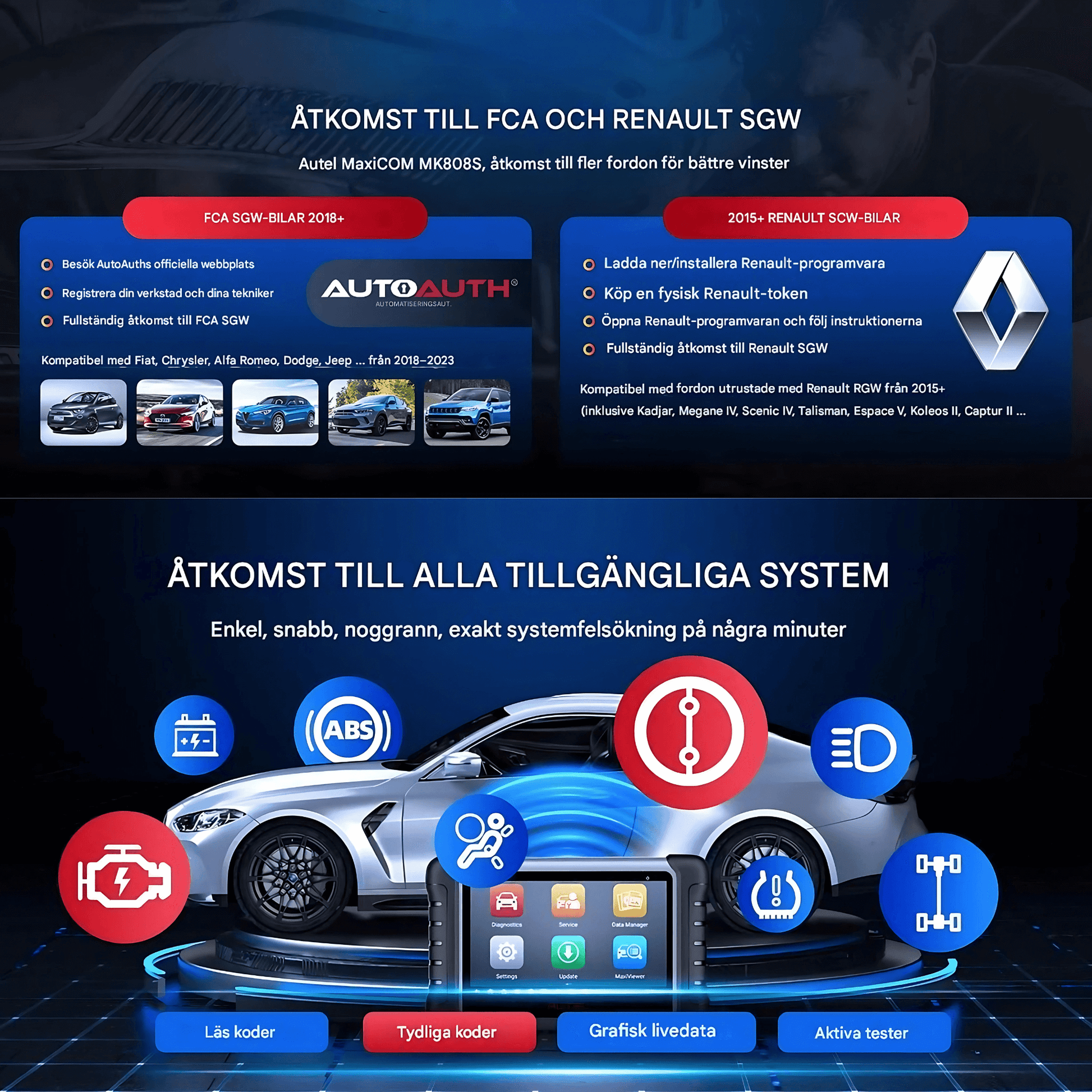 DiagMaster med Autel MaxiCOM MK808S kan ge en bredare inblick i bilens elektroniska system. Med möjlighet till både kodläsning, livedata och aktiva tester kan verktyget vara ett alternativ för både verkstäder och fordonsentusiaster som vill analysera bilens status mer ingående.