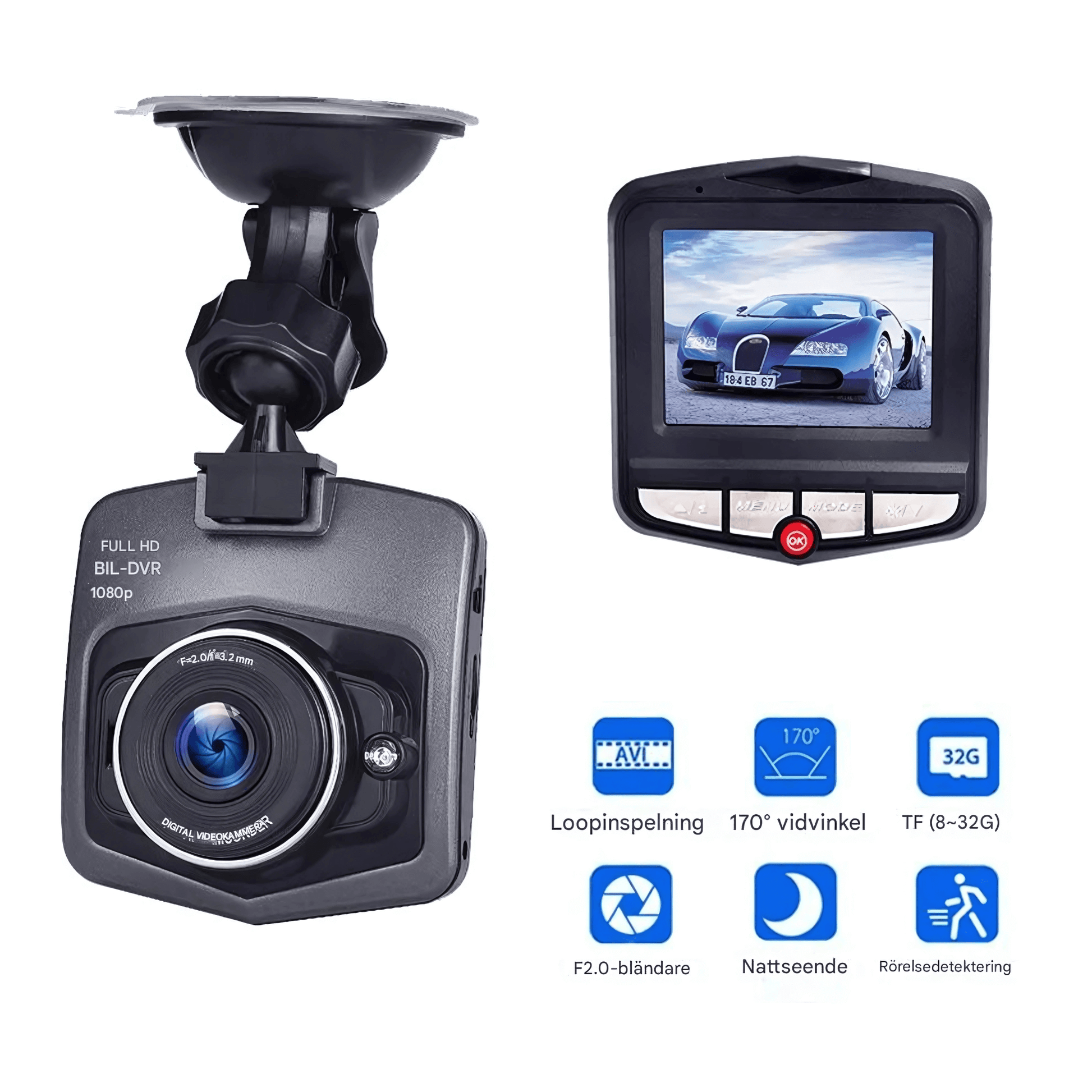 DriveProof - Kompakt Bilkamera med Vidvinkel, Loop-inspelning & Parkeringsövervakning