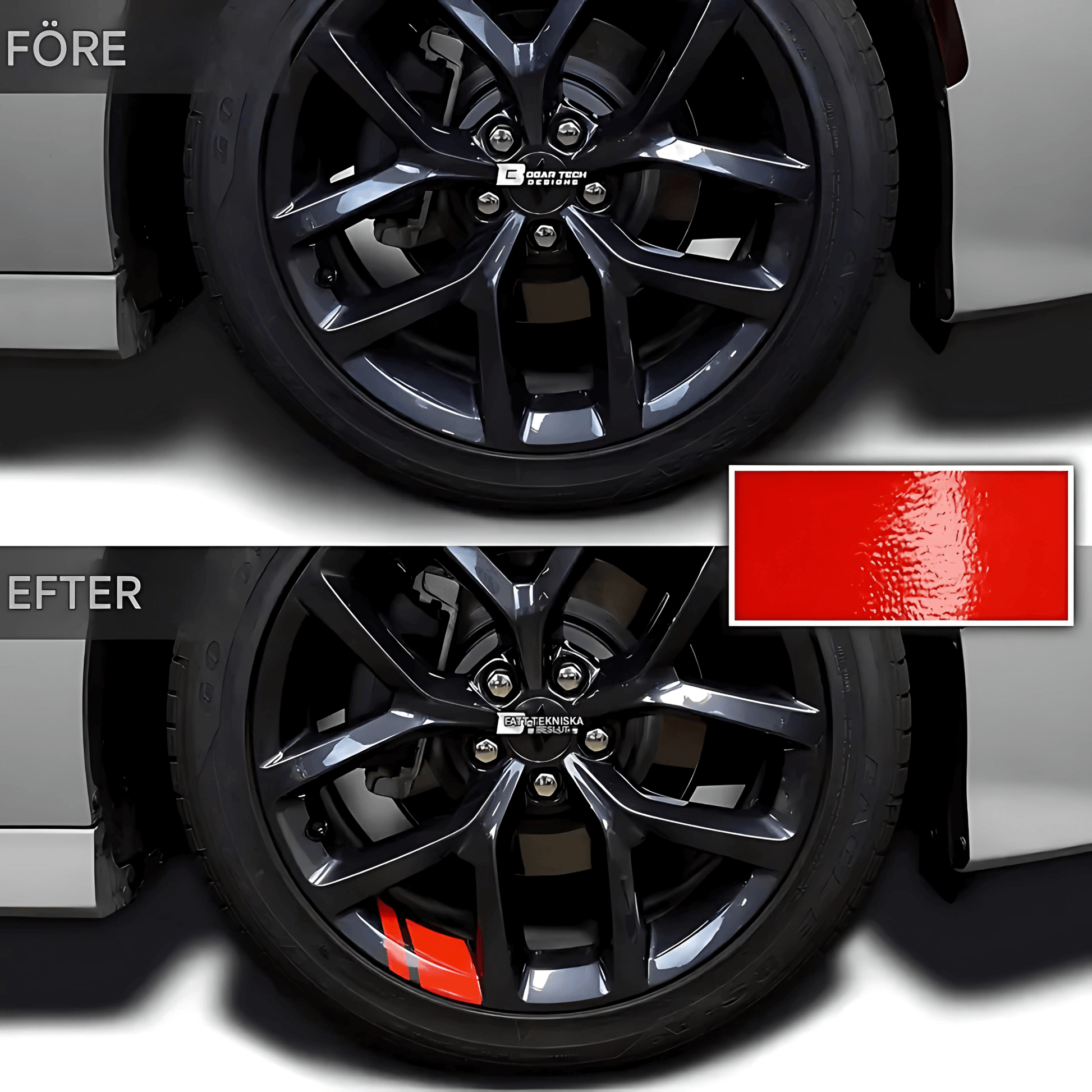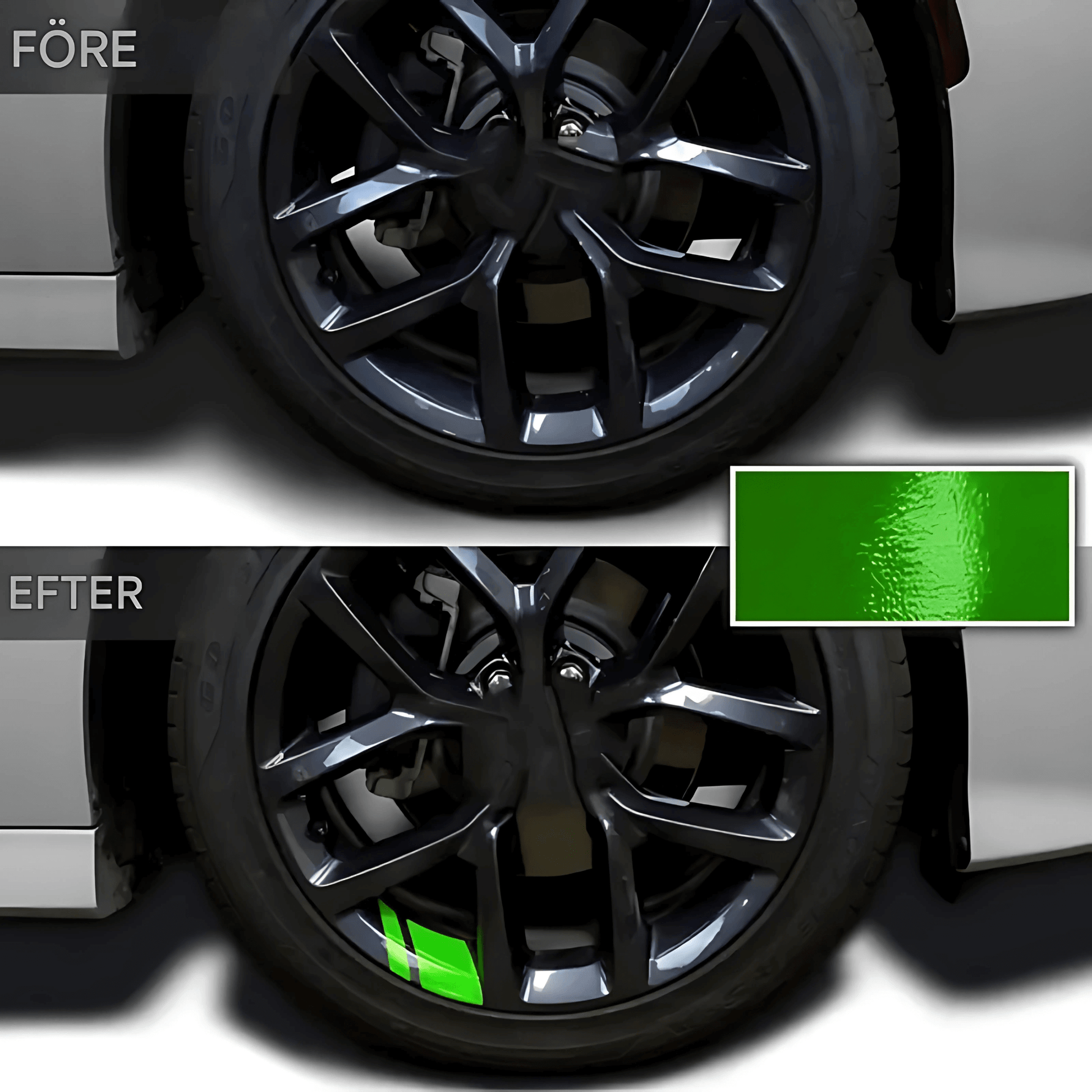 - Robust & vädertålig vinylyta - Tillverkad i reflekterande vinyl som tål vatten, sol och väder. Ytan är högblank och behåller glansen över tid – samtidigt som den inte påverkar färgen eller strukturen på fälgen.