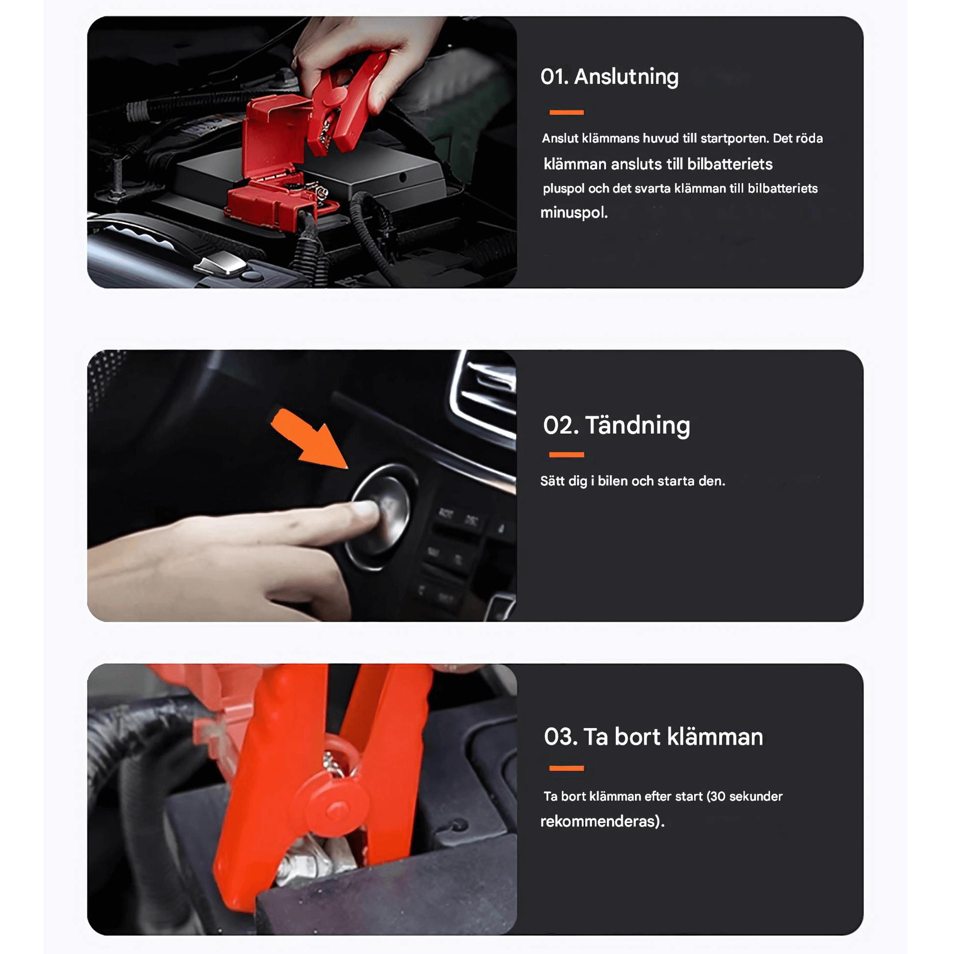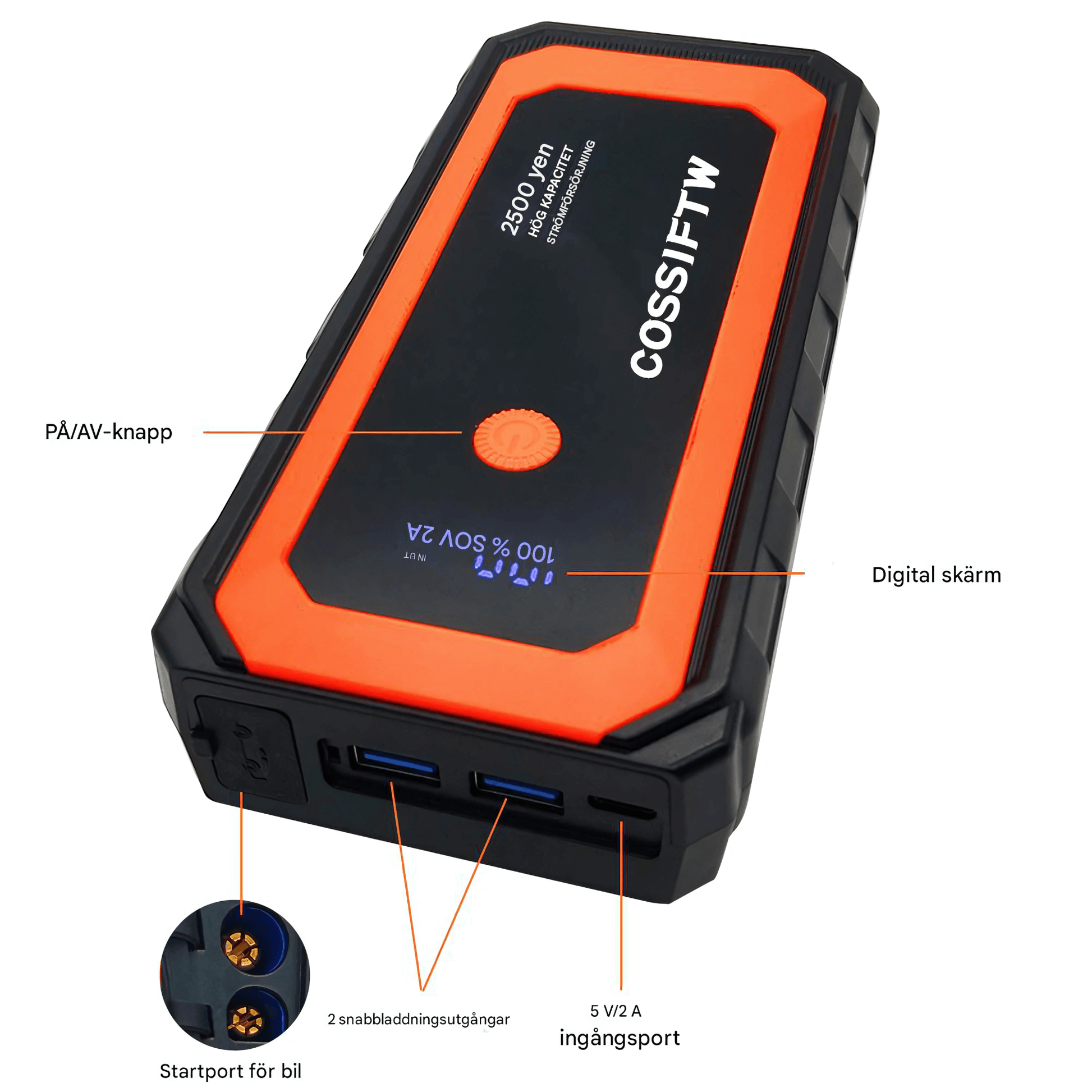 - ⚡ Hög peak‑ström på upp till 2500A – kan användas för många olika 12V‑fordon