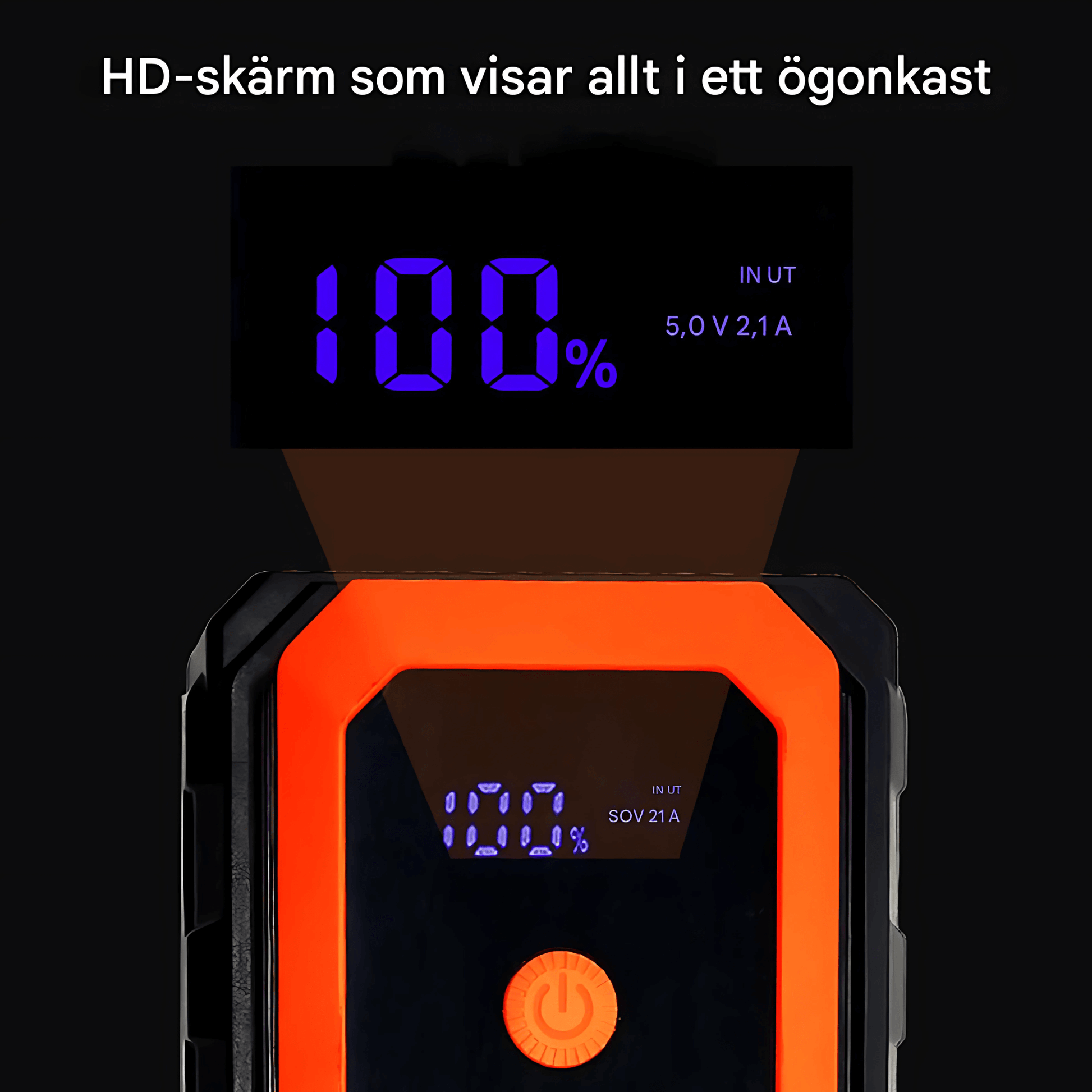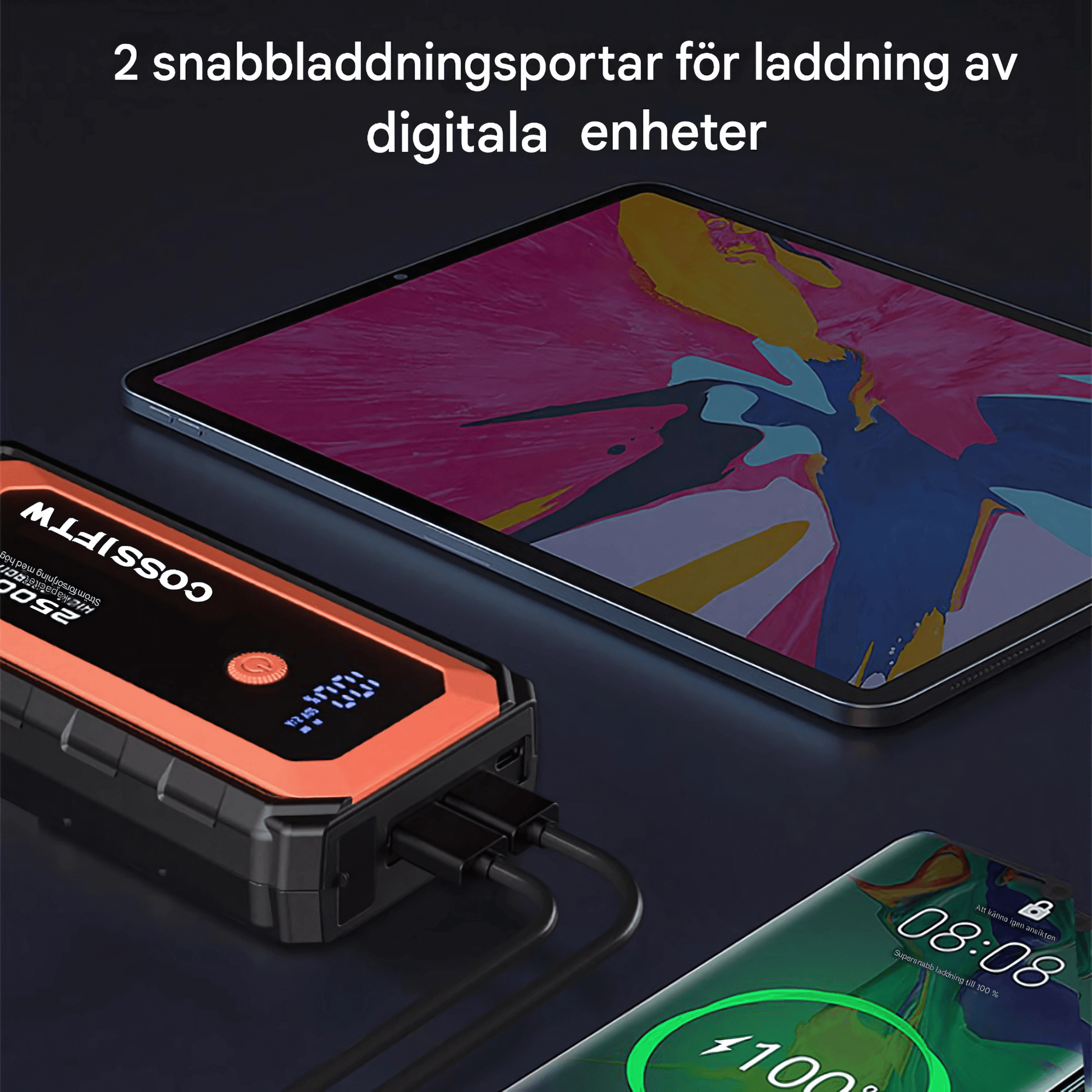 PowerCruise – Starthjälp & Powerbank 2500A med LED‑Lampa & Snabbladdning