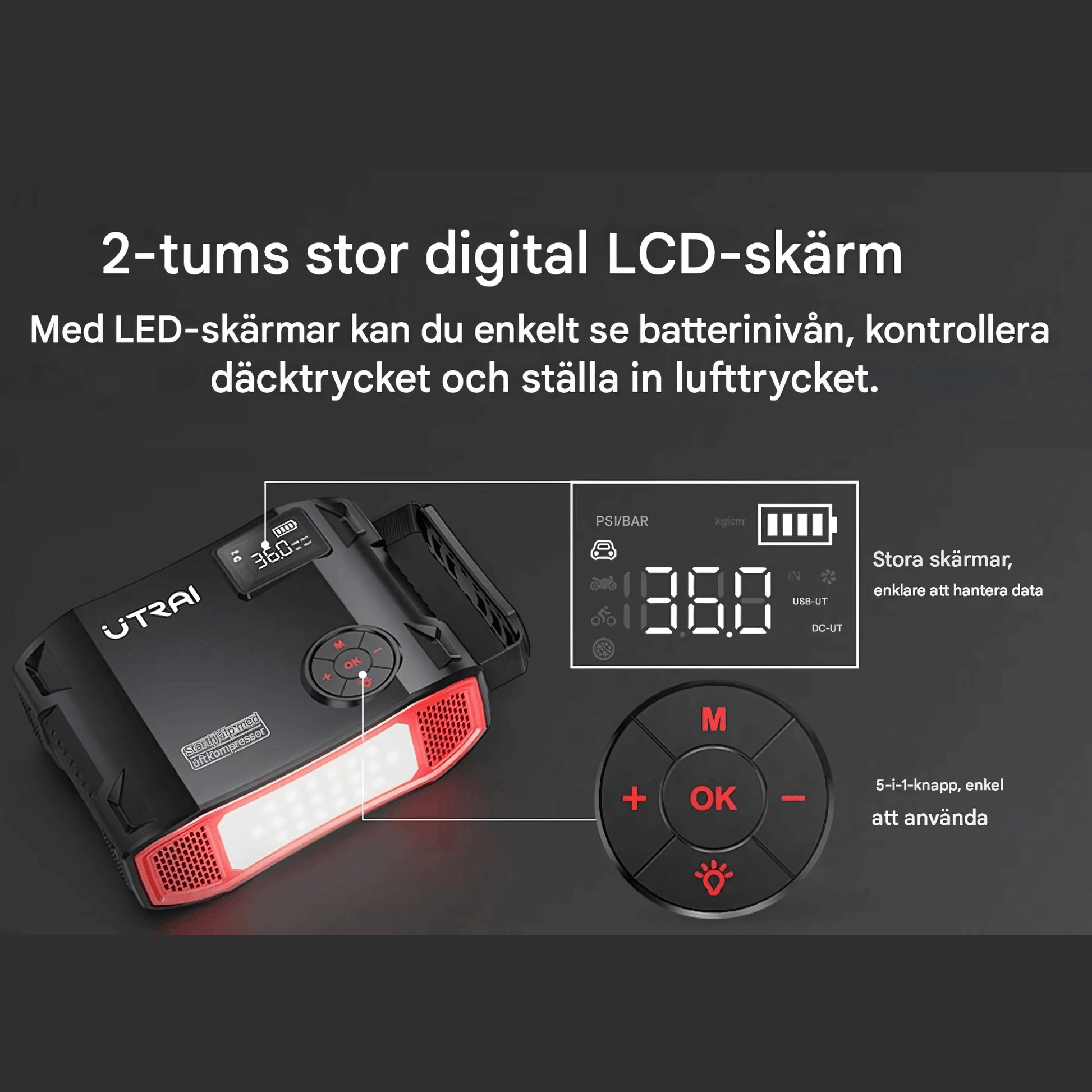 Inbyggd Luftkompressor för Snabb Däckpumpning