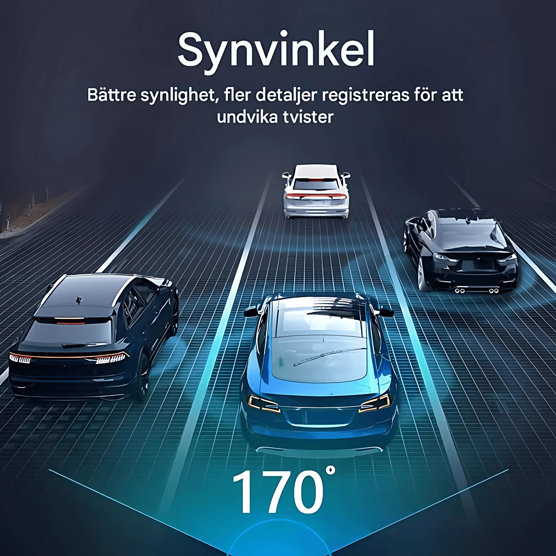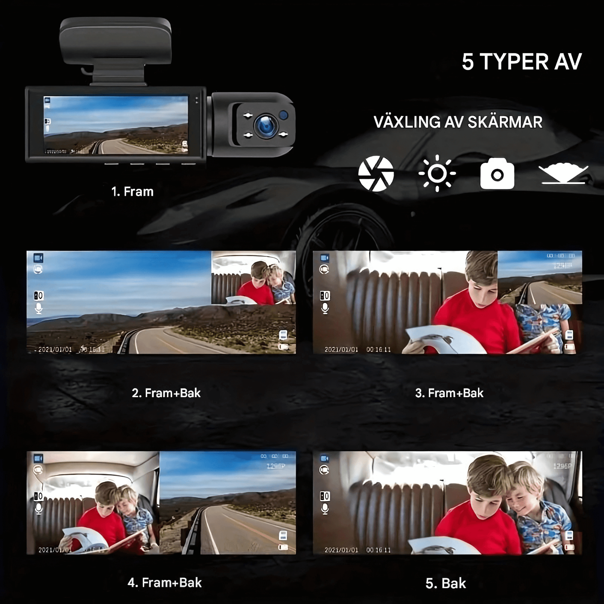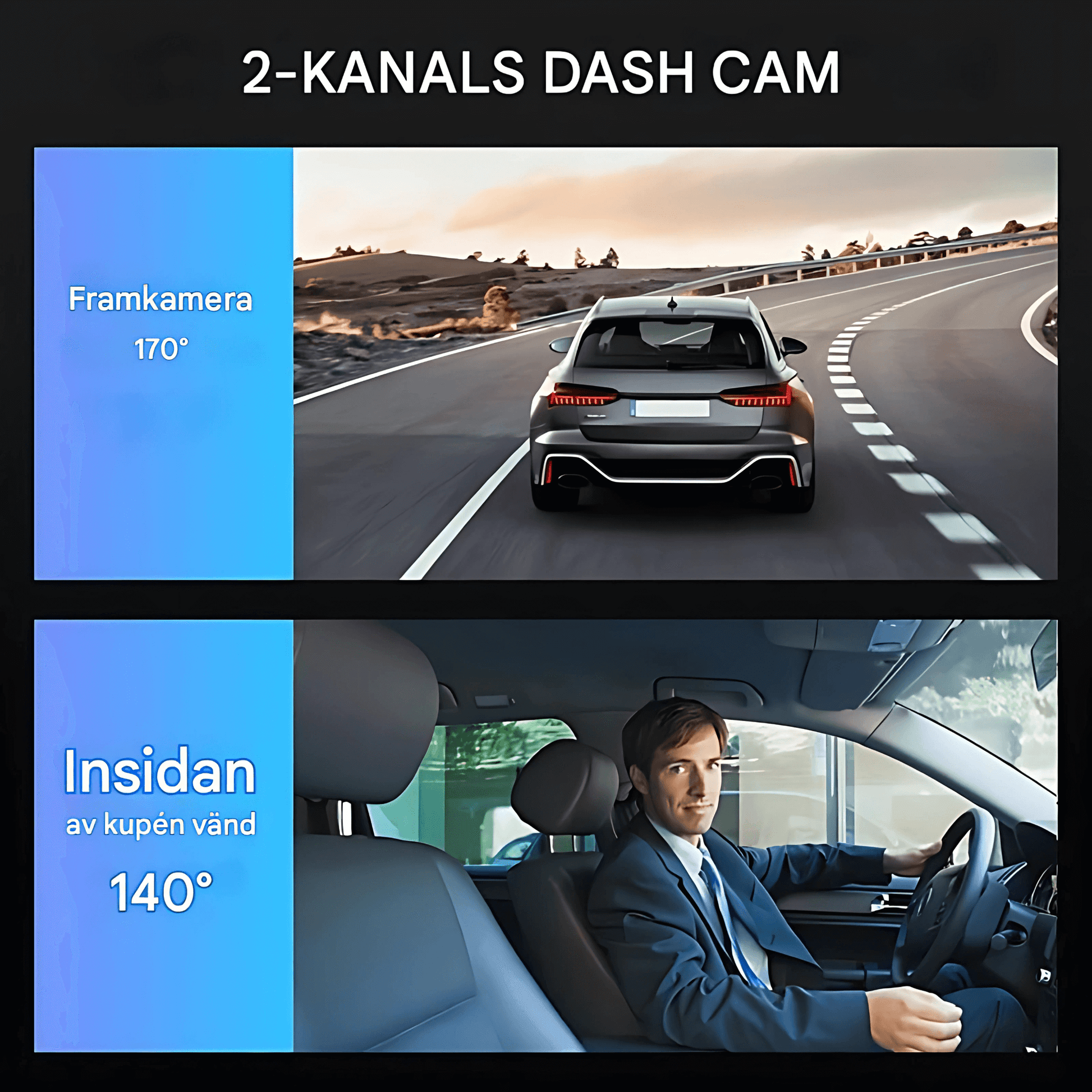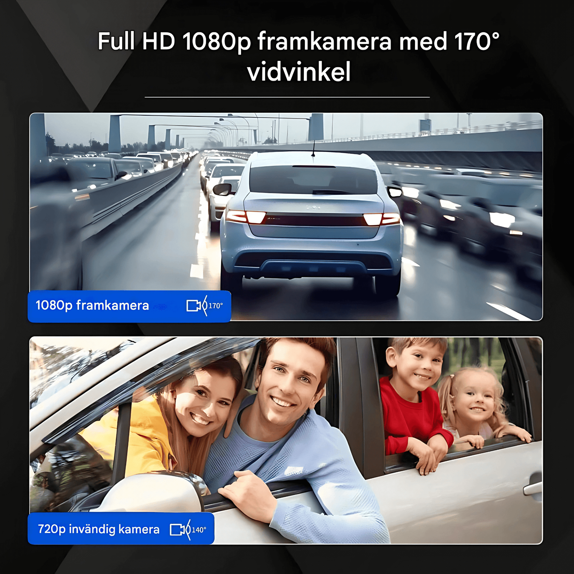- 👀 Dubbelkamera (framåt + kupé) – få med både vägen och det som händer i bilen
