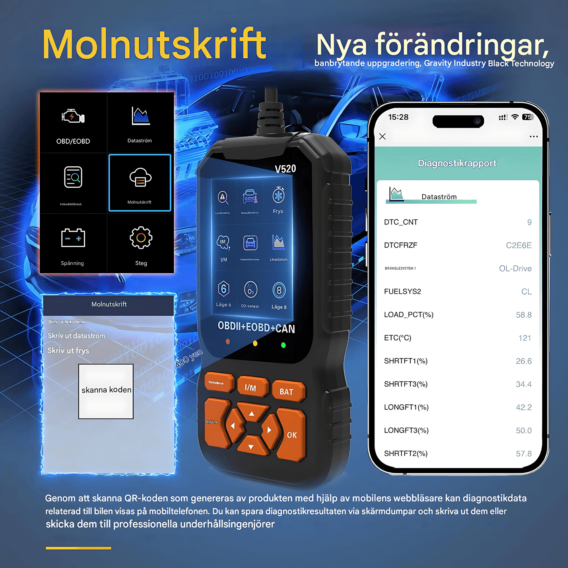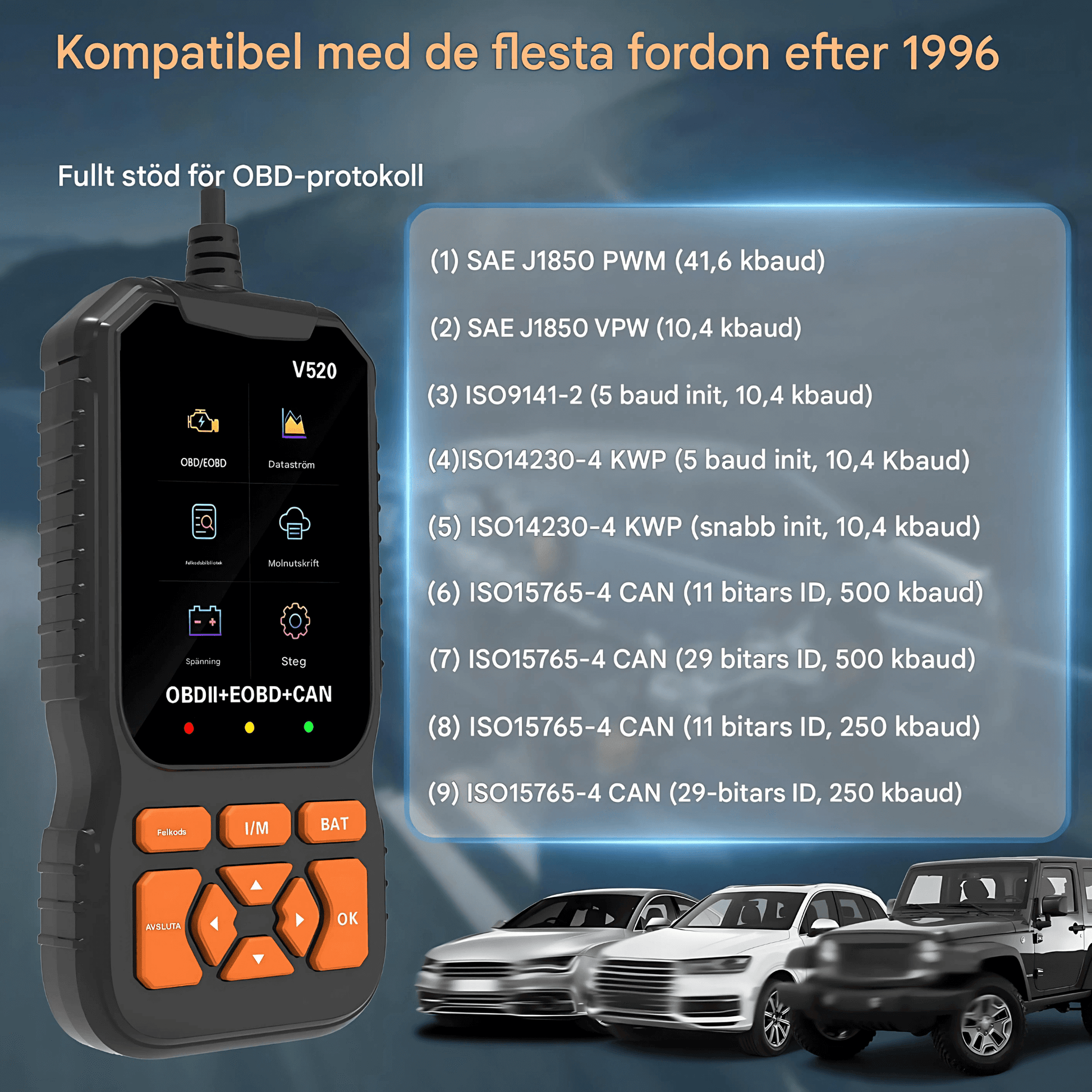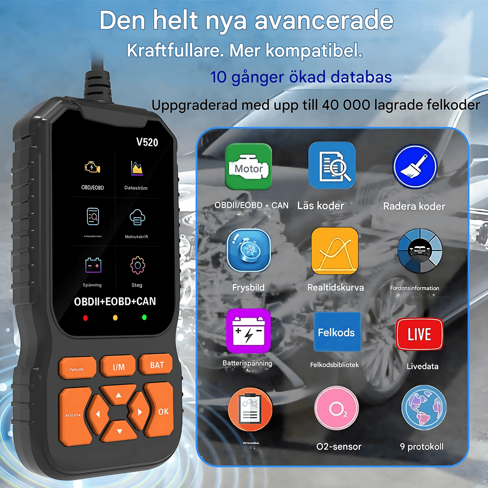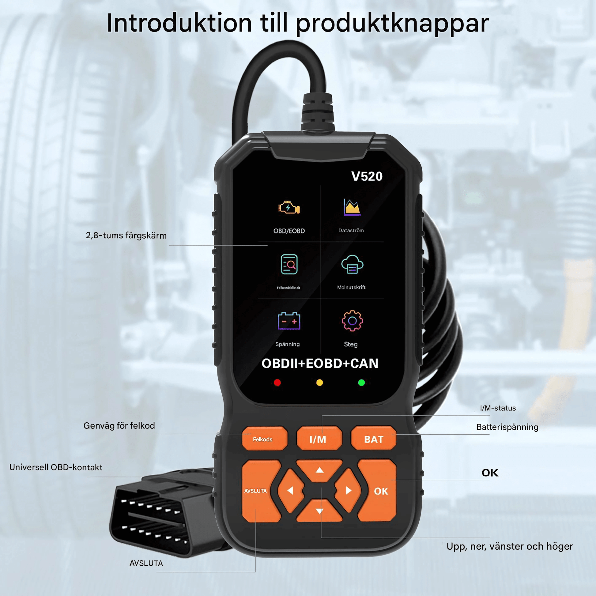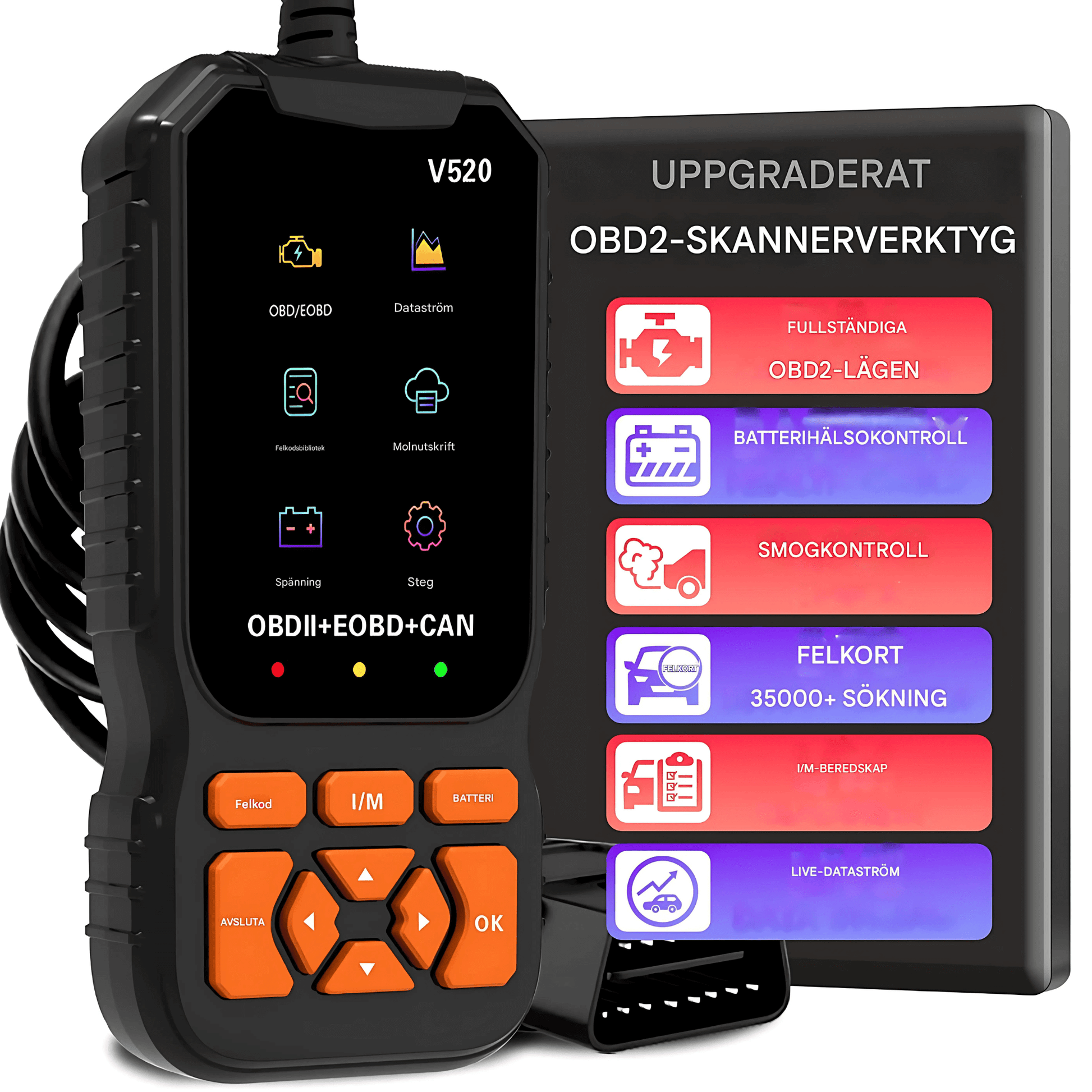 ScanDrive - V520 OBD2 Bilscanner med LiveData, Batteritest & Felkodsläsning för Bensin- och Dieselfordon