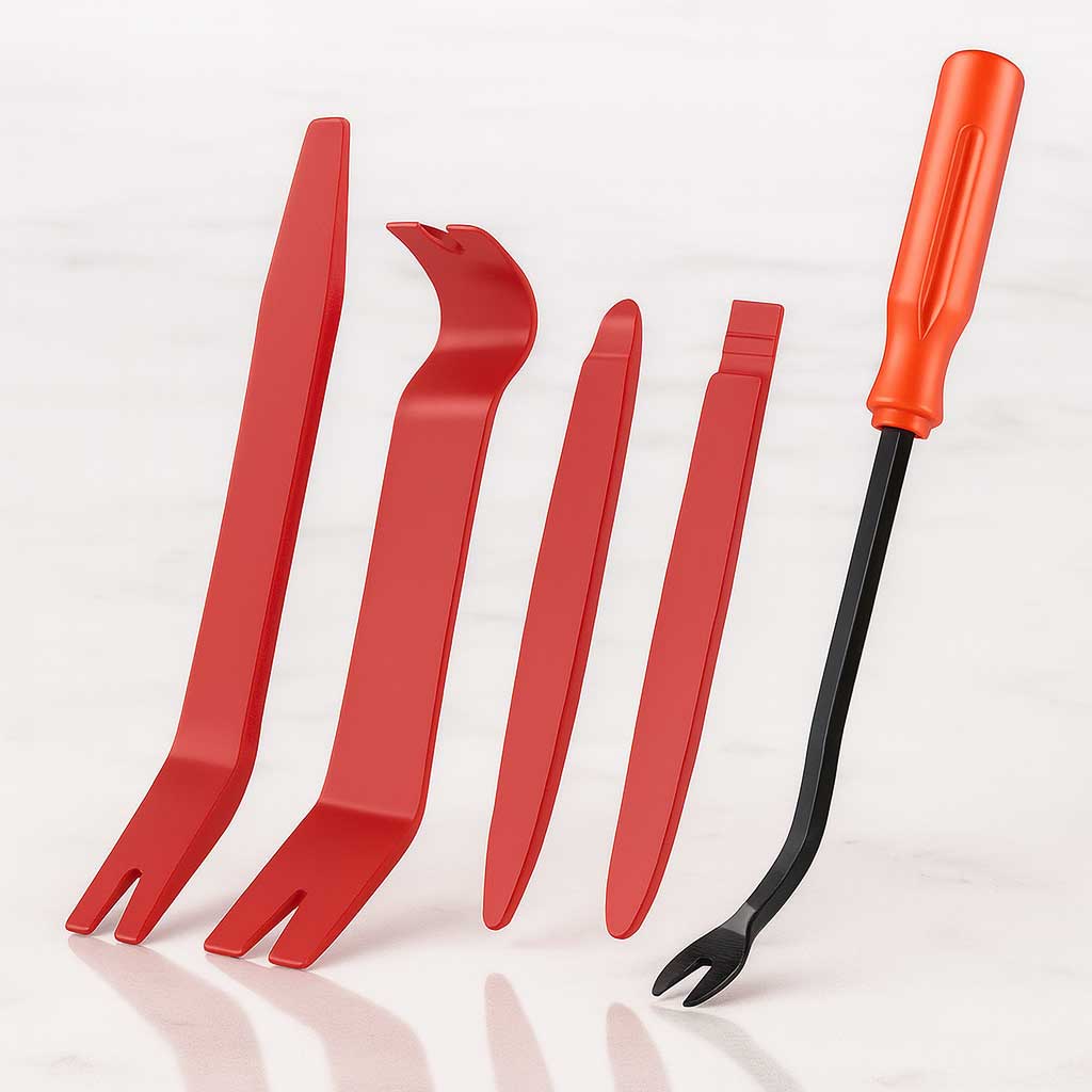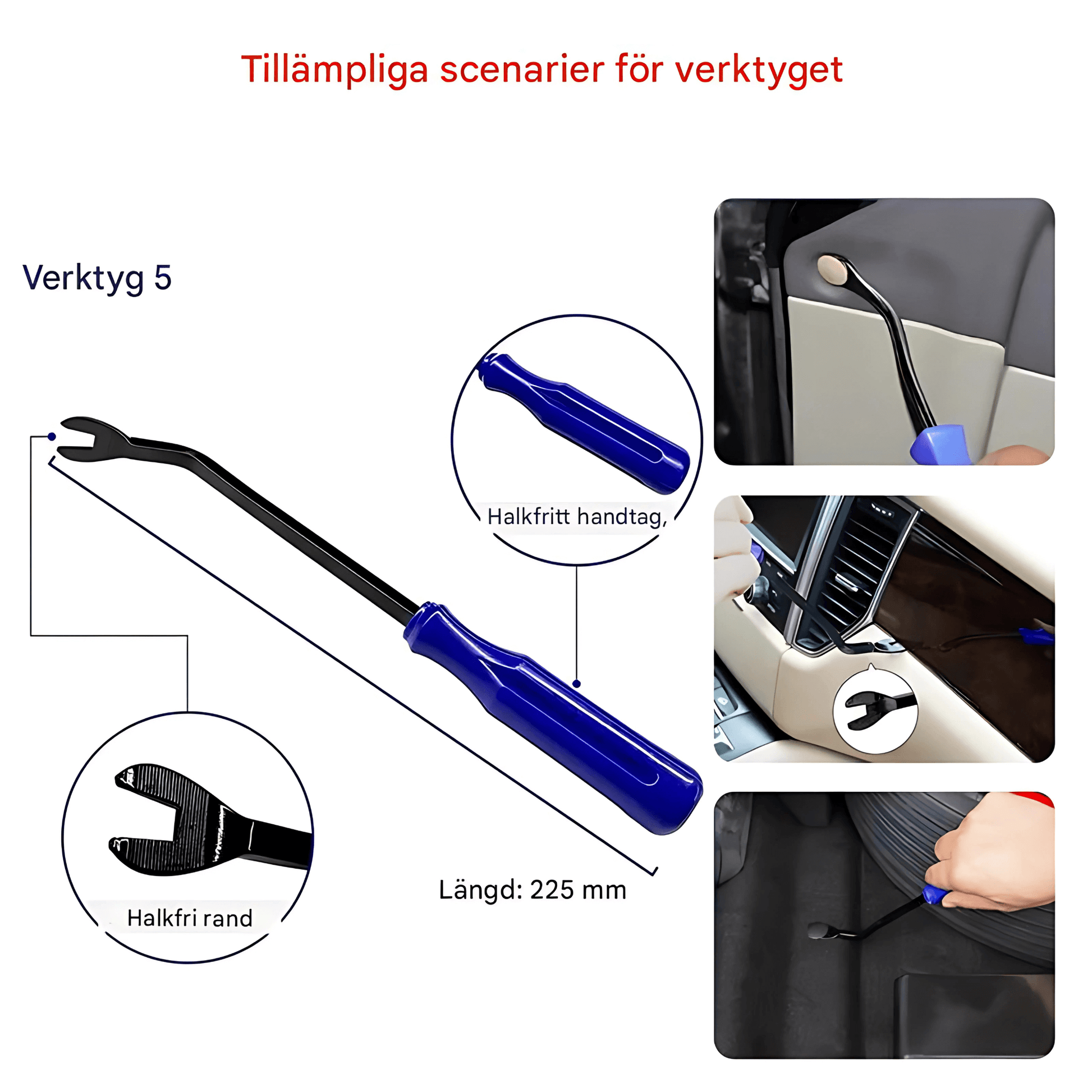 - 🔧 Verktyg för varje vinkel – rak, böjd och spetsig design hjälper dig att lossa clips, paneler och stereoenheter smidigt.