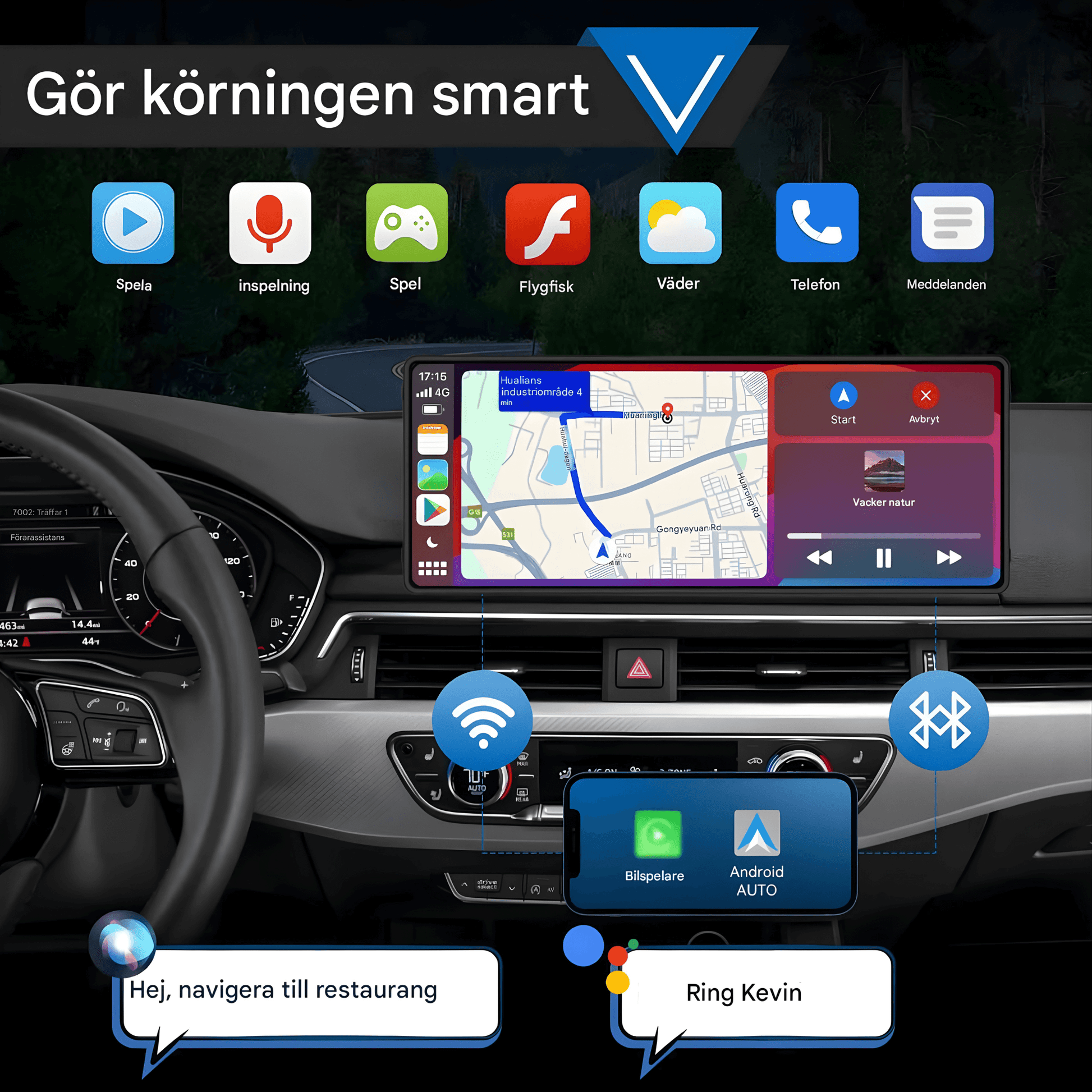 - 🚗 Kompatibel med CarPlay, Android Auto, spegling och multimedia – utan att byta bilstereo